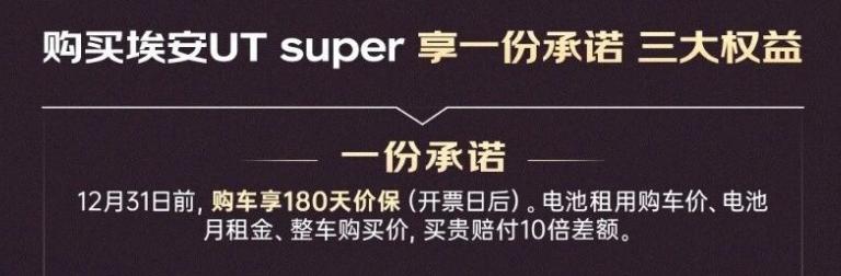 第一,所有在12月31日24点前完成购车的用户,无论选择电池租用方案的购车价与月租金,还是整车购买价,若在提车后180天内发生降价,均可获得10倍差额赔付,真正做到“早买早划算”。