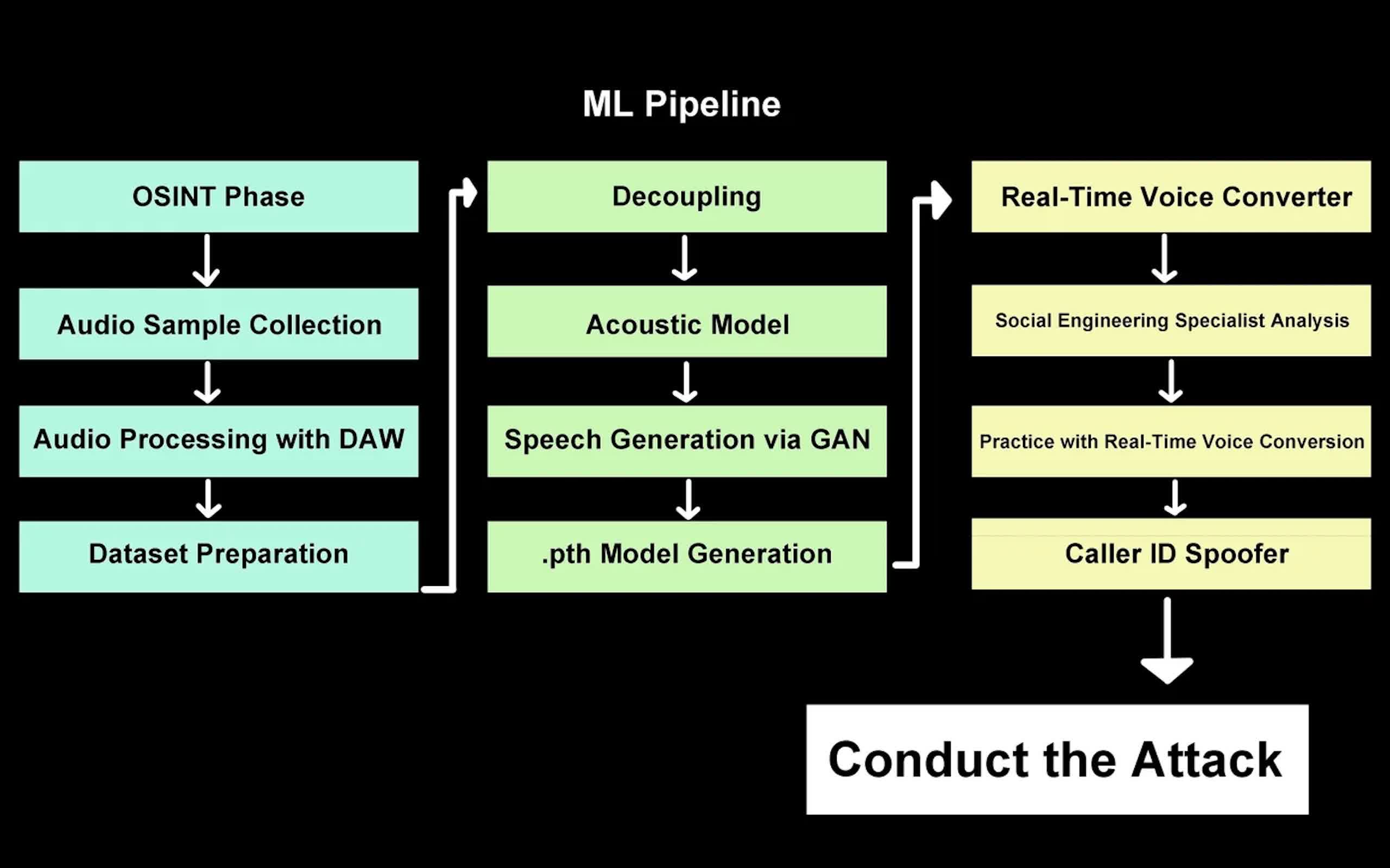网络安全公司NCC Group最新研究显示,通过将AI语音模型与普通笔记本电脑或智能手机结合,仅需半秒延迟即可实现高质量的实时语音模仿。操作员仅需简单操作,即可在定制网页界面上启动语音克隆。这种“深度伪造语音钓鱼”攻击方式可以用较低配置的显卡完成,甚至利用普通设备的麦克风就能获得足够真实的效果。