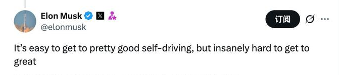 马斯克:自动驾驶达到不错水平相对容易但达到卓越极为困难